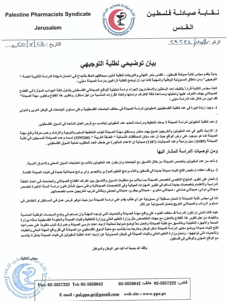 اسماء الناجحين في الفحص الاجمالي الشامل للصيادلة الجدد