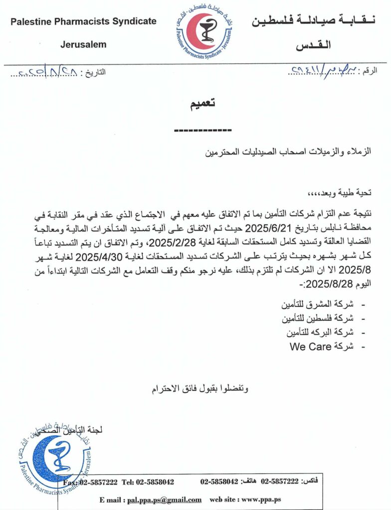 اعلان صادر عن مجلس نقابة الصيادلة