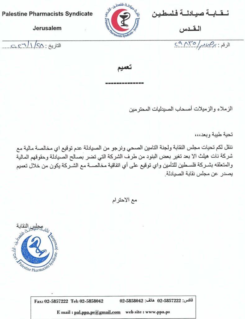اعلان صادر عن مجلس نقابة الصيادلة