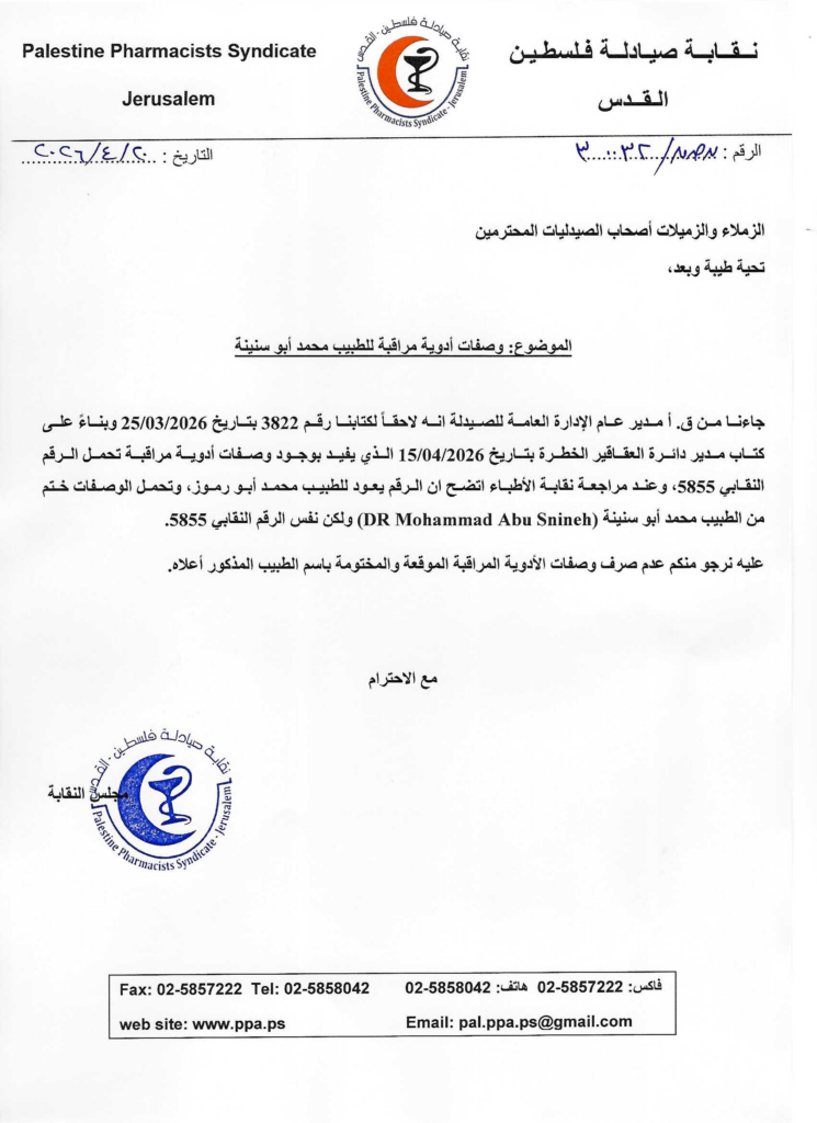 بيان صادر عن مجلس نقابة صيادلة فلسطين