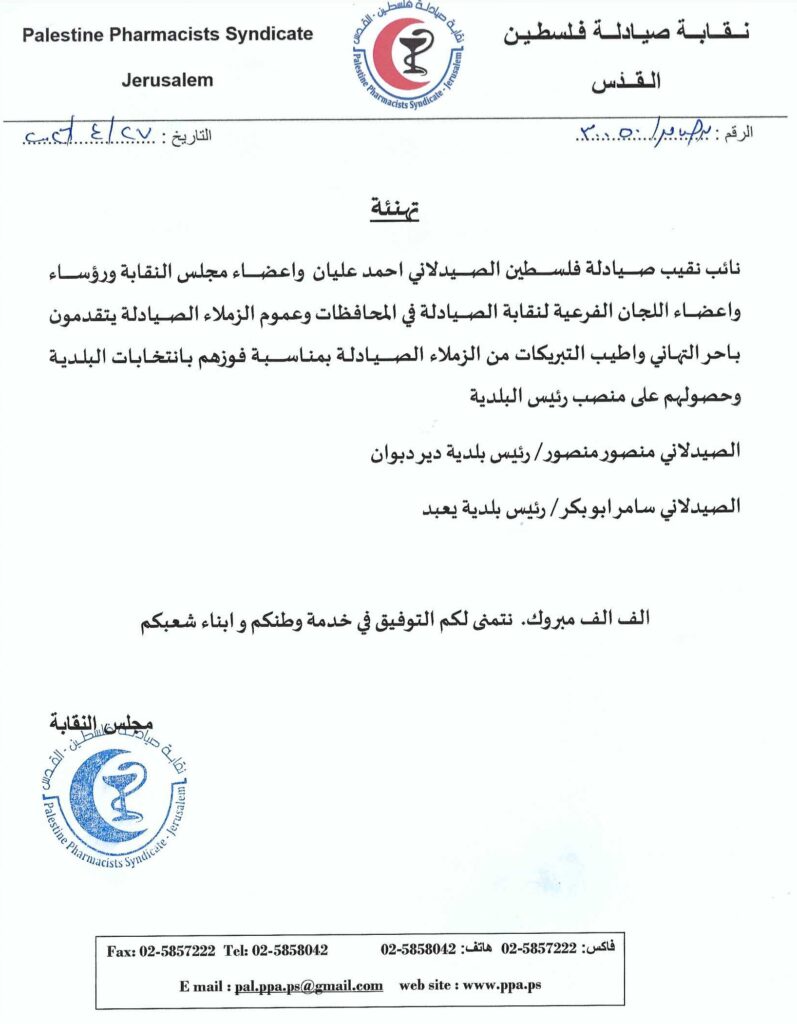 تهنئة بالفوز بانتخابات البلدية